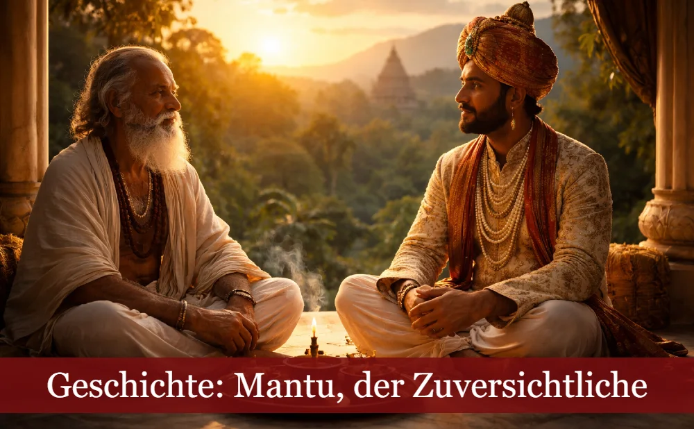 Mantu eilte herbei und sprach dem Maharaja tröstende Worte zu: „Mein Herr, verzweifelt nicht. Kein Schicksalsschlag trifft uns ohne Grund. Eines Tages werdet ihr erkennen, wozu dieser Verlust gut war.“