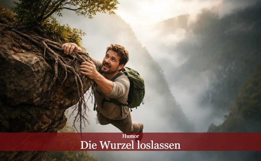 Die Wurzel im Witz ist genau das: eine scheinbare Sicherheit, die objektiv kaum verlässlicher ist als der freie Fall.