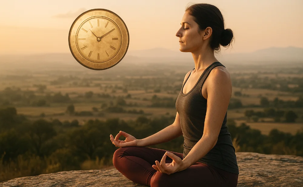Für Yogapraktizierende und -lehrende von heute stellt sich die Frage: Wie lässt sich diese Sutra-Erkenntnis im Alltag oder auf der Matte erfahren? Zunächst darf man den hohen philosophischen Anspruch herunterbrechen: In jedem Moment wirklich präsent zu sein, ist eine Übung, die wir jederzeit praktizieren können. Ob beim Atmen, beim Halten einer Asana oder in einer schwierigen Alltagssituation – es geht darum, den Geist immer wieder in den gegenwärtigen Augenblick zurückzuholen. Patanjalis Rat klingt simpel, hat aber enormes Gewicht: Wenn der Geist lernt, nicht ständig wegzuschweifen, sondern den Strom der Sekunden bewusst zu verfolgen, entsteht eine neue Qualität von Klarheit. Viele Übende berichten, dass intensive Meditationspraxis ihr Zeitempfinden verändert. Der Moment dehnt sich förmlich, wenn man voll darin aufgeht. Manchmal scheint die Zeit langsamer zu vergehen, oder man bemerkt feine Details, die vorher in der Eile untergingen. In tiefen Meditationserfahrungen kann es sich sogar anfühlen, als stände die Zeit still – der Strom der Augenblicke zerfällt in wahrnehmbare Einzelaspekte. Diese Erfahrung, quasi die „Matrix“ der eigenen Wahrnehmung zu erkennen, geht oft mit einem Gefühl großer Klarheit einher: Man sieht die Gedanken kommen und gehen, ohne in ihnen mitgerissen zu werden.
